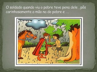 Num dia de tempestade, um soldado chamado Martinho encontra um homem pobre e pedinte. Ele corta sua capa ao meio e dá metade ao homem para se aquecer. Desde então, no dia de S. Martinho o tempo sempre fica bom, em lembrança da boa ação do soldado.