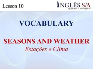 O documento lista as estações do ano e condições climáticas com links para o site www.inglessa.com.br fornecendo informações sobre cada termo em três tamanhos de fonte.