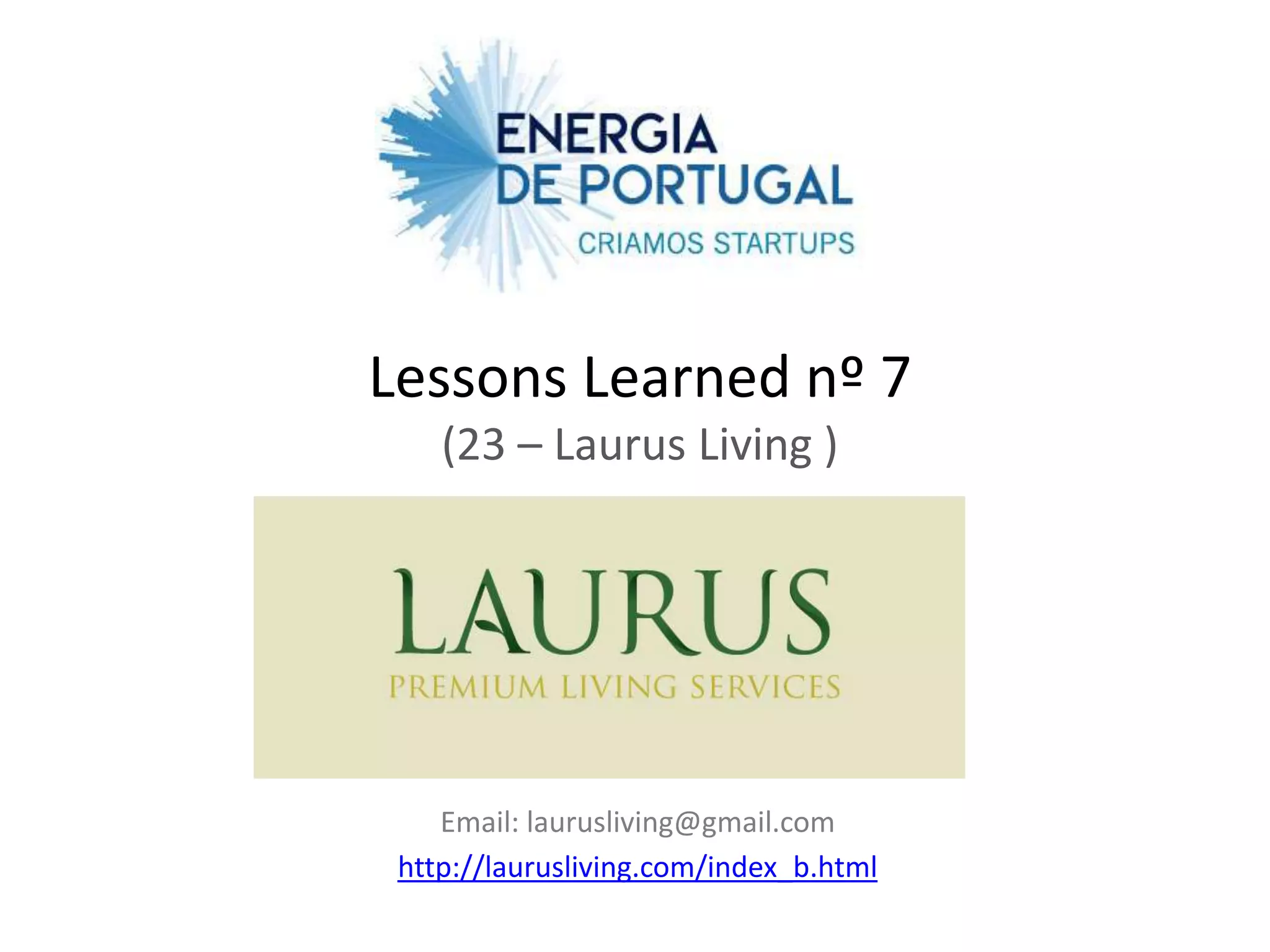 [1] O documento descreve o projeto da Laurus Living, uma empresa que oferece serviços para estrangeiros que desejam viver em Portugal de forma ativa e envolvida na comunidade, como experiências culturais e acesso a cuidados de saúde.