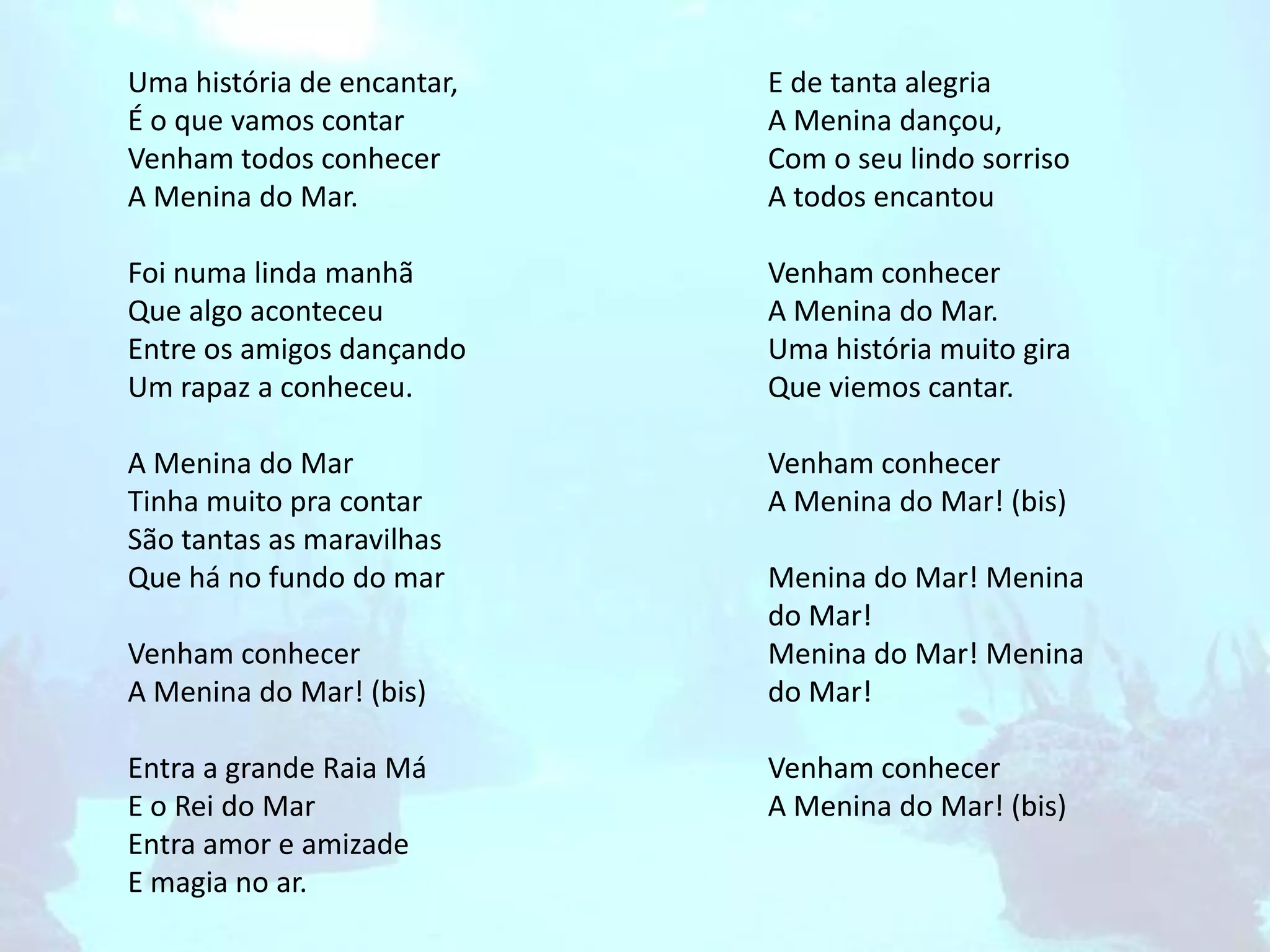A história conta sobre uma menina do mar que dançava encantando a todos, onde um rapaz a conheceu e ela passou a contar sobre as maravilhas do fundo do mar, com a chegada da Raia Má e do Rei do Mar, além de amor, amizade e magia no ar.