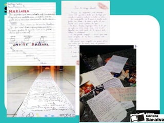 O documento discute estudos de letramento e como eles mudaram de foco dos efeitos universais da alfabetização para as práticas sociais de letramento. Letramento não é um método de ensino, mas sim a inclusão de práticas sociais de leitura e escrita em sala de aula. O documento também discute como trabalhar com gêneros textuais e desenvolver competências de leitura no contexto escolar.