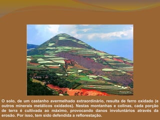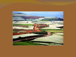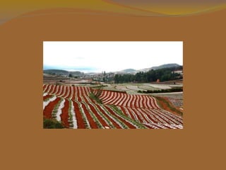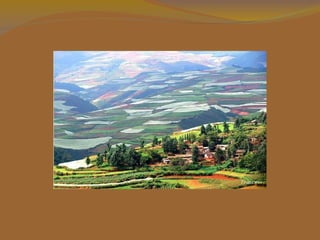 Lexiaguo é uma região remota no sudoeste de Kunming, Yunnan, China caracterizada por um solo vermelho rico em ferro e outros minerais que dão uma aparência colorida única às paisagens. As diferentes culturas agrícolas plantadas em terras de tamanhos e formas variadas criam padrões multicoloridos que mudam conforme a estação, tornando Lexiaguo um destino turístico notável, apesar da falta de infraestrutura.