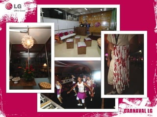 A LG patrocinou o Camarote do Reino e três blocos no Carnaval de Salvador de 2011 com ações focadas em sustentabilidade, como distribuição de coroas e crachás de papel reciclado. A empresa também promoveu acrobacias circenses, uma bailarina voando presa a um balão, lounge com móveis feitos de material reciclado e flashmob para divulgar a marca e encantar o público.