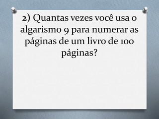 2) O algarismo 9 é usado 10 vezes para numerar as páginas de um livro de 100 páginas.