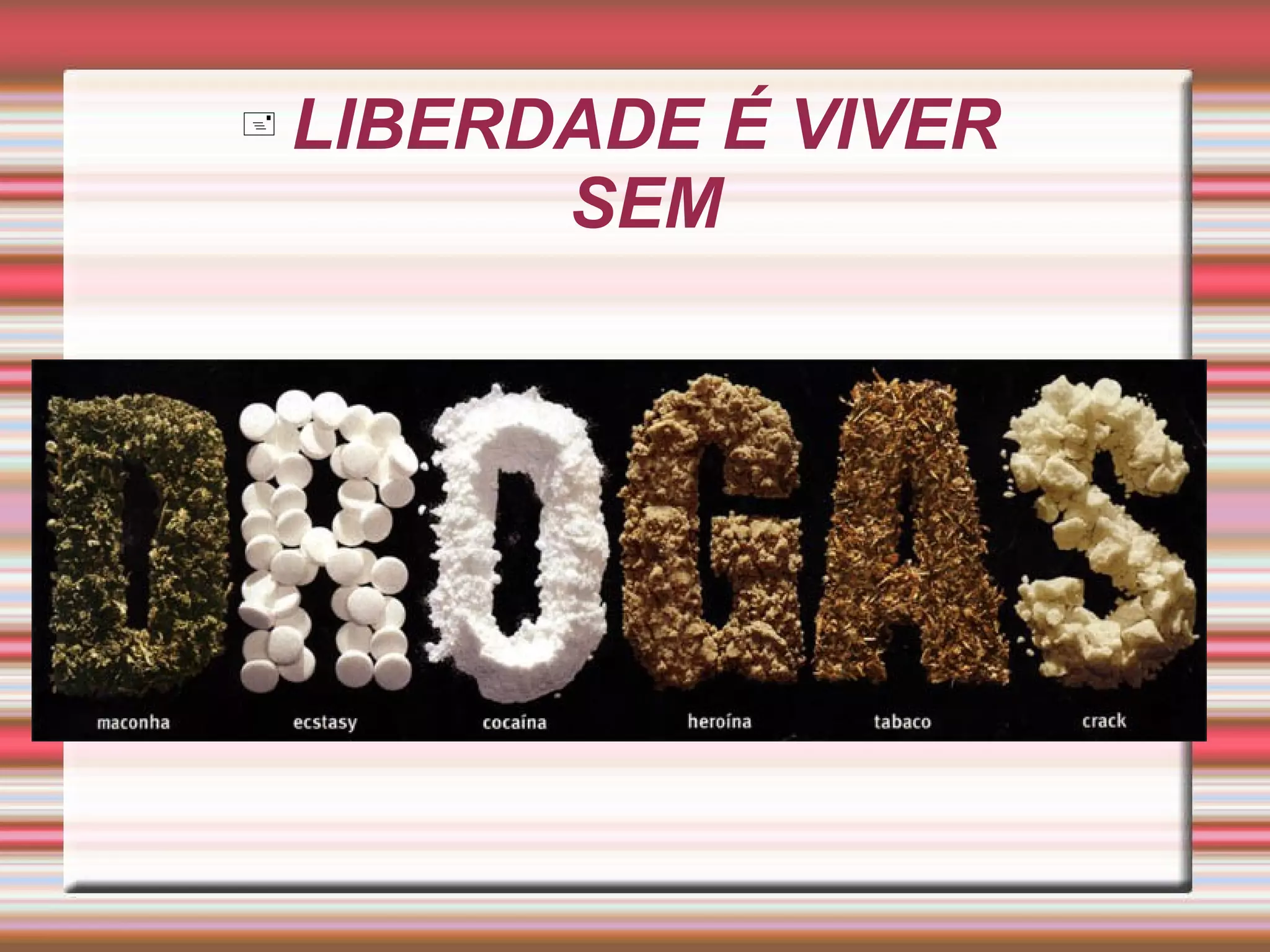1) As drogas são substâncias químicas que podem causar dependência física e psicológica e trazer sérias consequências à saúde, incluindo a morte por overdose.