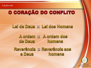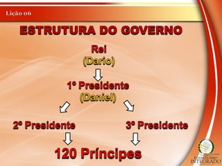 O documento resume os capítulos estudados do livro de Daniel. No capítulo 6, Daniel enfrenta um teste de lealdade ao ser acusado injustamente e jogado na cova dos leões, mas Deus envia um anjo para protegê-lo, mostrando que Daniel é inocente. O rei fica aliviado ao ver que Daniel sobreviveu ilesos.