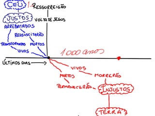O documento descreve a volta de Cristo, prometida por Jesus. Resume que Jesus prometeu preparar um lugar para os crentes e voltar para levá-los consigo; que os mortos em Cristo ressuscitarão primeiro e os vivos serão transformados e arrebatados para estar com o Senhor; e que os que não se prepararem serão destruídos na segunda vinda.