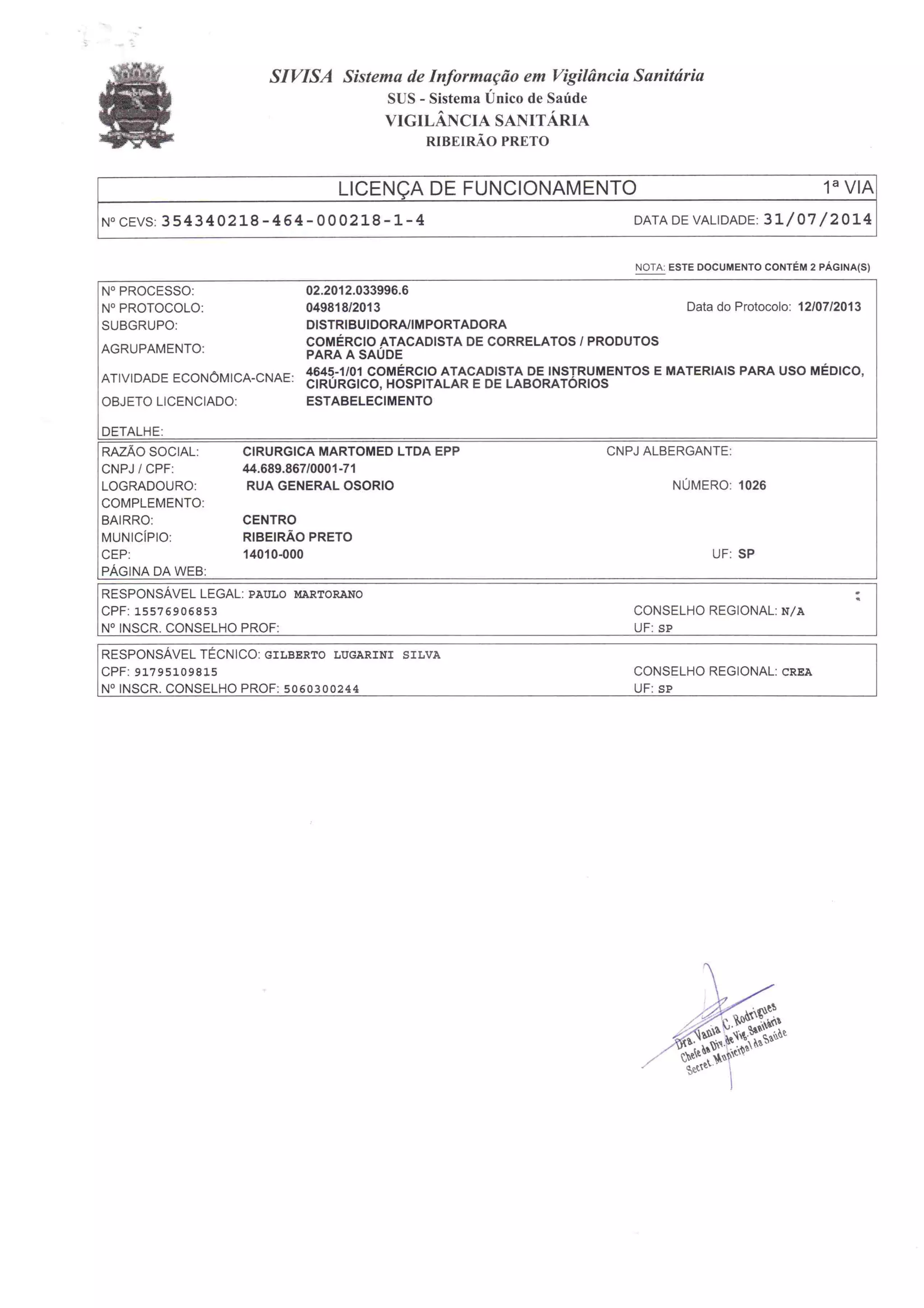 Licença de funcionamento