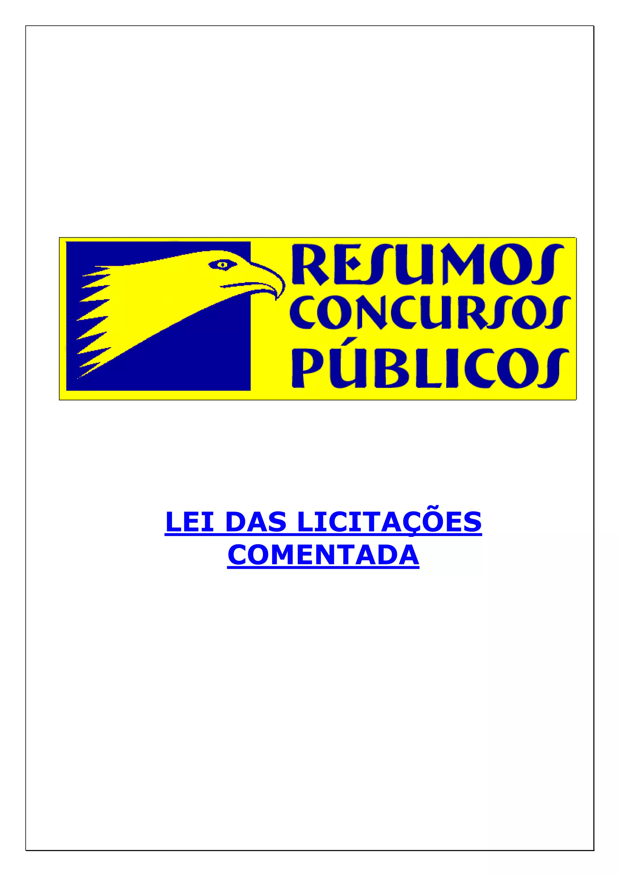 1. O documento resume a Lei das Licitações no Brasil, definindo seus principais conceitos, sujeitos e objetos.