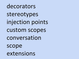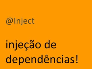 O documento discute a evolução de frameworks Java como Struts para CDI e VRaptor, e como implementar injeção de dependência e escopo de requisição com CDI. Também apresenta uma abordagem para integrar VRaptor e Struts em uma mesma aplicação.