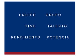 O documento discute os conceitos de grupo, equipe, liderança e poder. Define grupo como duas ou mais pessoas conscientes umas das outras que interagem para atingir metas comuns. Equipe é um tipo de grupo onde os membros dependem uns dos outros para alcançar objetivos compartilhados. Liderança é ocupar um papel ativo que mobiliza esforços coletivos e voluntários para alcançar metas em comum. Poder é a influência intencional exercida por uma pessoa ou grupo sobre a conduta alheia.