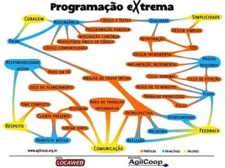 O documento apresenta os métodos ágeis de desenvolvimento de software. Apresenta que os métodos ágeis surgiram quando um grupo de profissionais de software criou o Manifesto Ágil valorizando indivíduos, software funcionando, colaboração com cliente e adaptação a mudanças. Também define os métodos ágeis como aprendizado contínuo, colaboração, foco no cliente, equipes pequenas e entregas incrementais com feedback constante.
