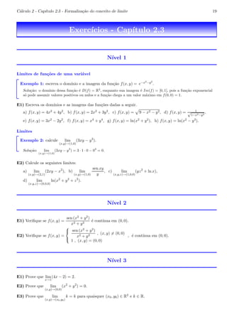 1. O documento descreve a formalização do conceito de limite para funções de uma ou mais variáveis, apresentando as definições formais de limite.