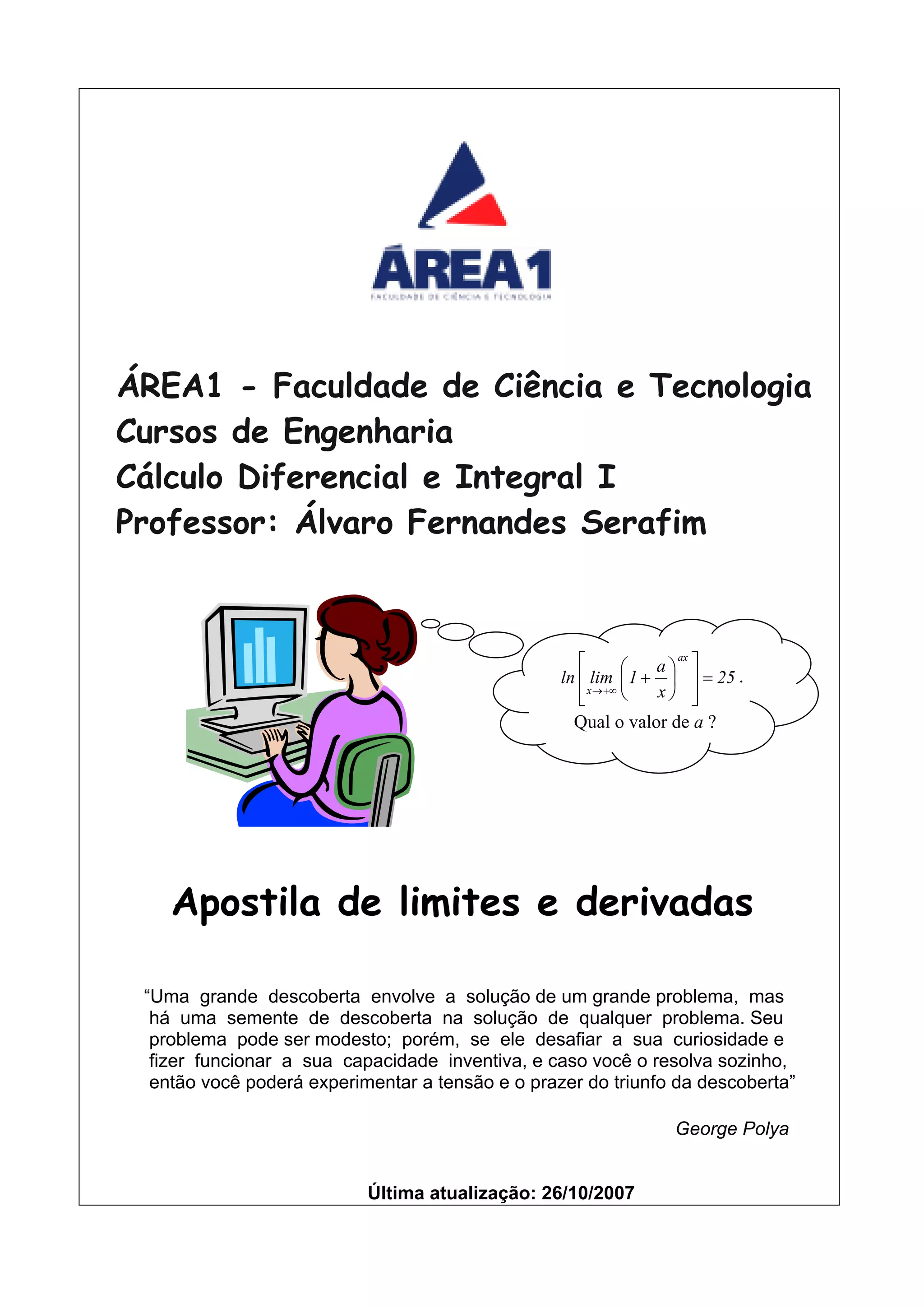 O documento apresenta um resumo sobre limites e derivadas. Ele começa definindo limites de forma intuitiva e apresentando tabelas de aproximações. Em seguida, mostra como calcular limites em casos de indeterminação do tipo 0/0, sem necessidade de tabelas, simplificando a expressão da função. Por fim, apresenta alguns exemplos de cálculo de limites.
