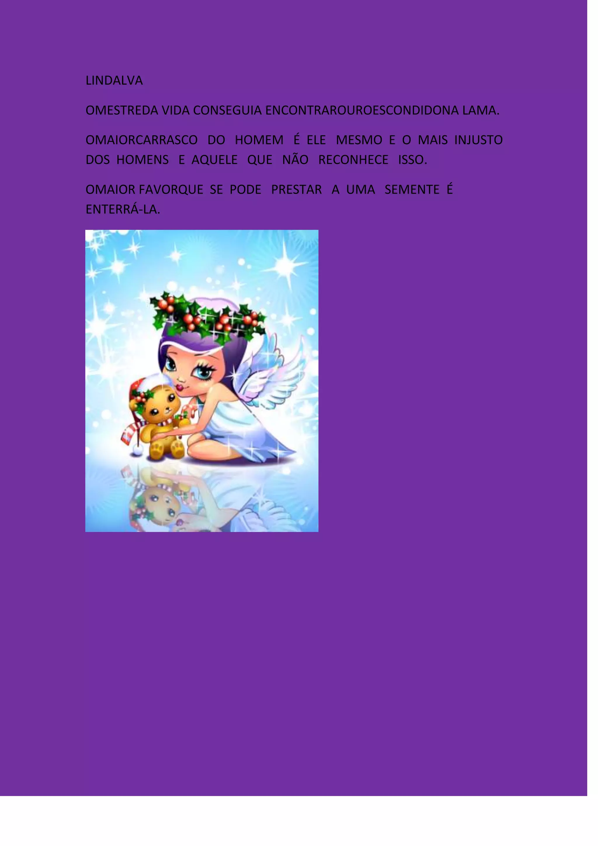 Lindalva tinha a habilidade de encontrar caminhos escondidos na lama. O maior inimigo de um homem é ele mesmo quando não reconhece isso. Enterrar uma semente é o maior favor que se pode prestar a ela.