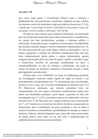 1) O Procurador-Geral da República requer a abertura de inquérito para investigar o Senador Luiz Lindbergh Farias Filho com base nas declarações de colaboradores sobre pagamentos indevidos em campanhas eleitorais.