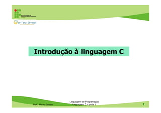 O documento apresenta uma introdução à linguagem de programação C ministrada pelo professor Mauro Jansen. Apresenta o histórico, características e estrutura básica da linguagem C, além de conceitos como pré-processador, tipos de dados, variáveis, operadores, estruturas de controle e exemplos de programação.