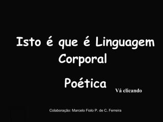 Este documento discute linguagem corporal poética e colaboração. Ele pergunta se o leitor já imaginou o trabalho envolvido em criar poses e tirar fotos, e deseja uma boa semana.