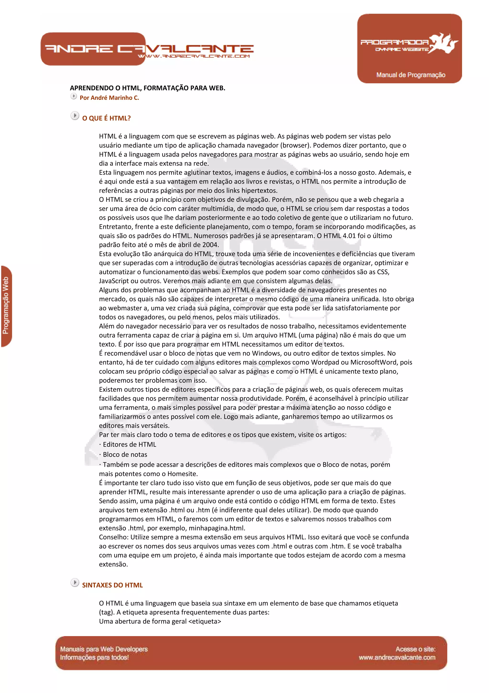 APRENDENDOO HTML, FORMATAÇÃO PARA WEB.