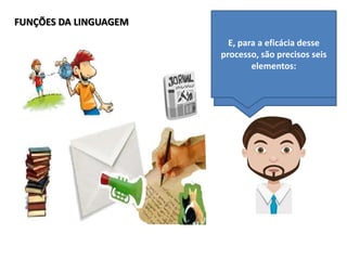 Este documento discute as funções da linguagem e como elas são aplicadas em diferentes contextos de comunicação verbal e não verbal. No documento, são descritas as seis funções principais da linguagem - referencial, expressiva, conativa, poética, metalinguística e fática - e exemplos são fornecidos para ilustrar como cada função é manifestada tanto em linguagem verbal quanto não verbal.