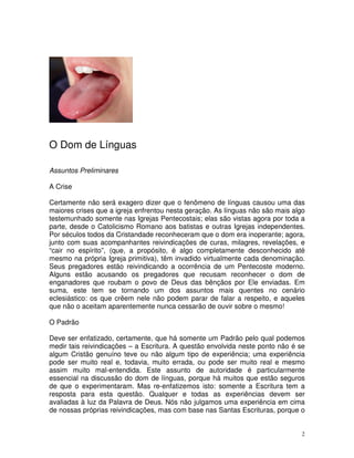 1. O dom de línguas causou uma grande crise na igreja, com diferentes denominações reivindicando experiências pentecostais modernas.