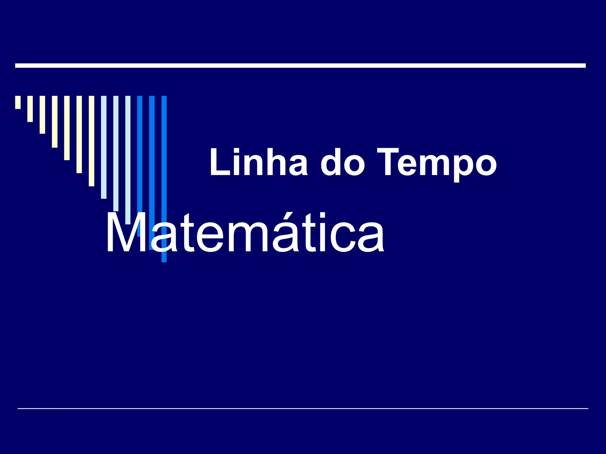Este documento apresenta uma linha do tempo da matemática, desde 1800 a.C. até 1993, destacando os principais desenvolvimentos ao longo da história, como a criação do sistema numérico pelos sumérios, o trabalho de Euclides sobre geometria, a introdução do zero pelos indianos e sua adoção pelos árabes, o desenvolvimento do cálculo diferencial e integral por Newton, a criação da geometria não euclidiana e a prova final do último teorema de Fermat por Wiles.