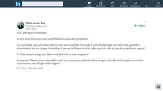 O LinkedIn, lançado em 2003 por Reid Hoffman e adquirido pela Microsoft em 2016, é a maior rede profissional do mundo com aproximadamente 550 milhões de usuários. O Brasil ocupa o terceiro lugar em número de usuários, com cerca de 30 milhões, e a plataforma também possui 3 milhões de ofertas de emprego ativas. A recente concorrente Powerupp busca diferenciar-se ao evitar recomendações públicas, promovendo uma validação mais autêntica das competências dos profissionais.