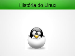 Este documento fornece um resumo sobre a história do Linux, incluindo seu criador Linus Torvalds e como ele começou o desenvolvimento do kernel Linux em 1991. Também discute projetos como o GNU de Richard Stallman e como eles contribuíram para o sucesso do Linux. Finalmente, explica alguns dos principais pontos sobre distribuições Linux como Ubuntu, Debian e Red Hat.