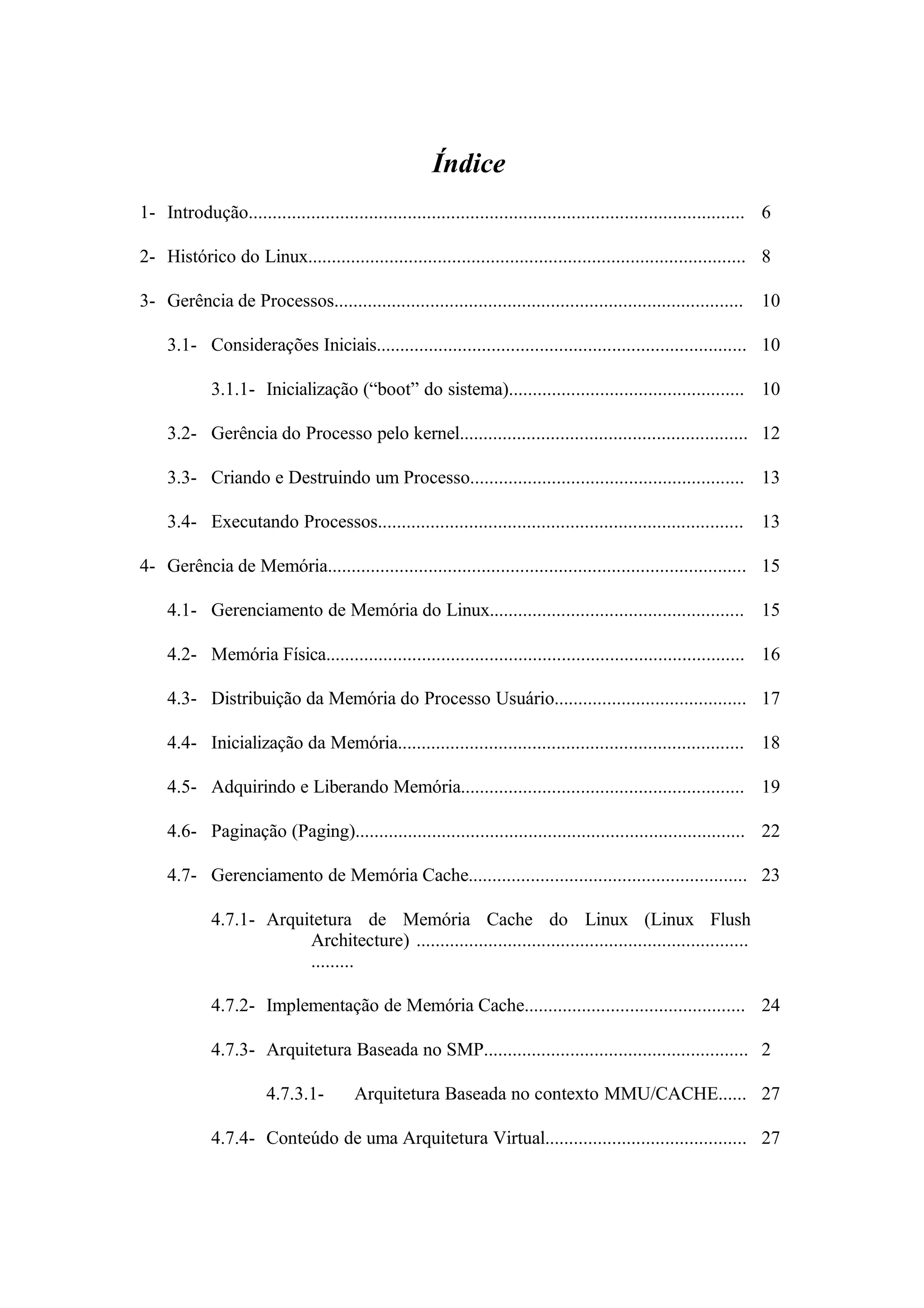 O documento discute o sistema operacional Linux, abordando sua história, gerenciamento de processos e memória, sistema de arquivos e estrutura de diretórios. É dividido em seções tratando da introdução ao Linux, sua história, gerenciamento de processos e memória, sistema de arquivos e estrutura de diretórios, pontos positivos e negativos e conclusão.