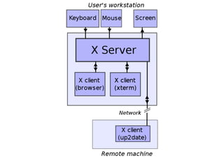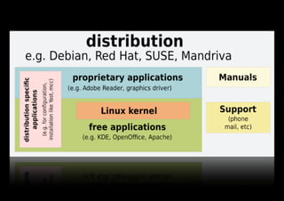 O documento apresenta uma introdução ao Linux Desktop, descrevendo o que é Linux e o GNU, seus principais usuários como Google, Mozilla e IBM, aplicações comuns como navegadores e softwares de produtividade, e detalhes sobre a instalação em diferentes distribuições como Debian, Fedora e Ubuntu.