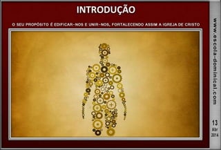 O documento promove o site de uma escola dominical e fornece o nome do produtor dos slides, Evangelista Ismael Pereira de Oliveira.