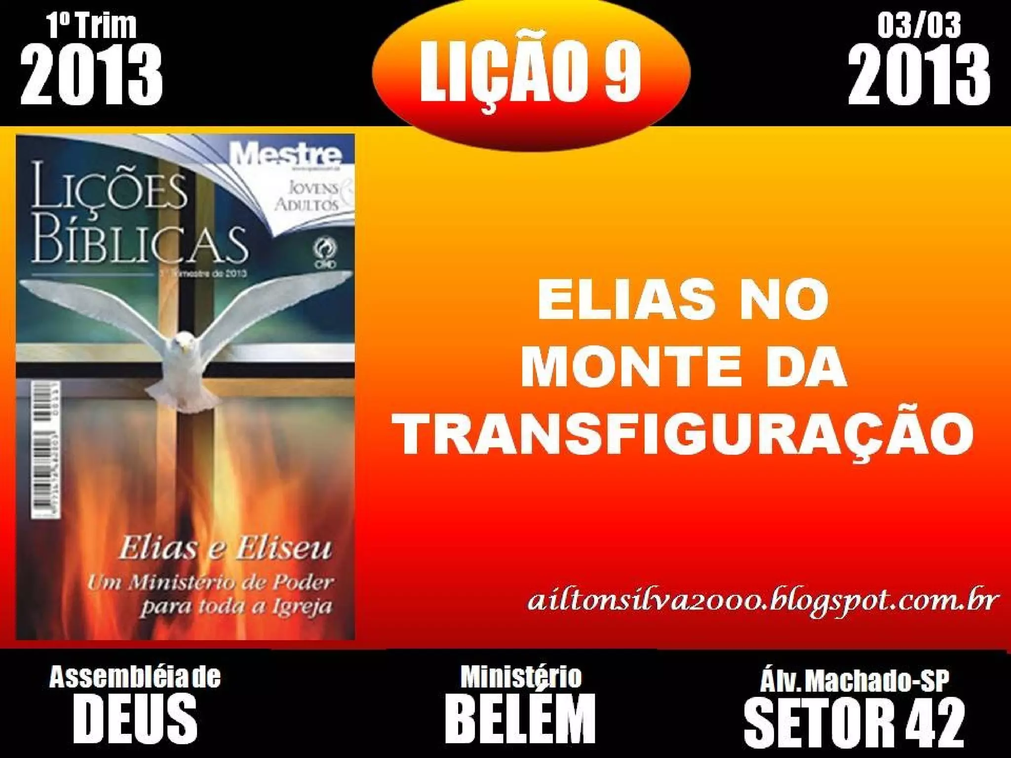 O documento descreve a lição bíblica sobre a Transfiguração de Jesus segundo Mateus 17. Na lição, é explicado que: 1) Moisés e Elias apareceram para apontar a Jesus como o cumprimento da Lei e dos Profetas; 2) A voz de Deus declarou Jesus como seu Filho amado e que deve ser ouvido; 3) A Transfiguração revelou a glória divina de Jesus antes de sua crucificação.