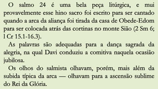 1) O salmo descreve a ascensão triunfal de Cristo ao céu após Sua vitória sobre o pecado e a morte.