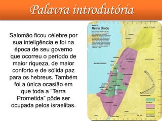 Salomão foi um rei sábio de Israel que reinou durante um período de prosperidade e paz. No fim de sua vida, ele refletiu sobre a vaidade das coisas mundanas e concluiu que sem Deus nada faz sentido. Ele aconselha a colocar esperança no Senhor durante as crises financeiras, diversificar investimentos e trabalhar constantemente.