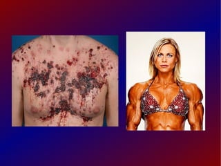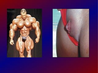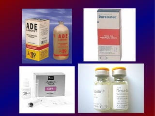 EFEITOS DOS ANABOLIZANTESA capacidade do organismo de incorporar proteína extra em grande quantidade no músculo; O tamanho e a força muscular mais rápido do que sistema normal entre treinamento e alimentação e suplementação; No sangue, aumentam a contagem de células vermelhas, volume e concentração de hemoglobina, sendo que todos estes fatores aumentem a performance a nível esportivo; Aumenta o metabolismo basal ( aumenta a queima de calorias ); Facilitam a atenção e o raciocínio; Diminuem a quebra e perda de proteína muscular causada pelo treinamento;