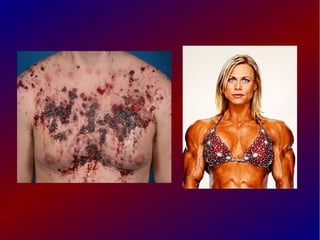 O documento discute os lipídios, classificando-os em glicerídeos, cerídeos, esteróides e lipídios complexos. Também aborda o colesterol e suas funções no organismo, assim como os riscos dos anabolizantes para a saúde.