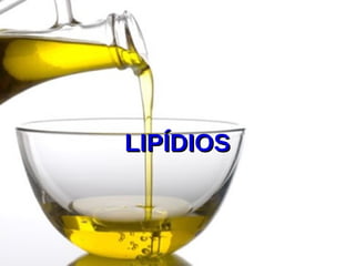 O documento discute os lipídios, moléculas orgânicas essenciais formadas por ácidos graxos e álcool. Explica que os lipídios desempenham funções importantes como armazenamento de energia, componentes de membranas celulares e hormônios. Também classifica e descreve diferentes tipos de lipídios como carotenoides, ceras, fosfolipídios e glicerídeos.