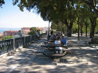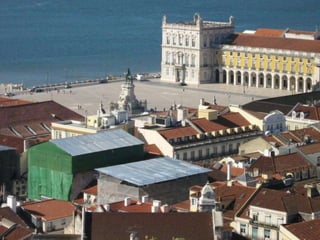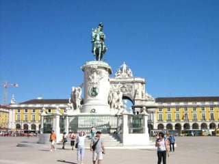 Este documento fornece um roteiro de pontos turísticos em Lisboa, Portugal, começando na Praça dos Restauradores e terminando no Parque das Nações, listando locais como o Rossio, o Terreiro do Paço, o Mosteiro dos Jerónimos, o Castelo de São Jorge e o Oceanário.