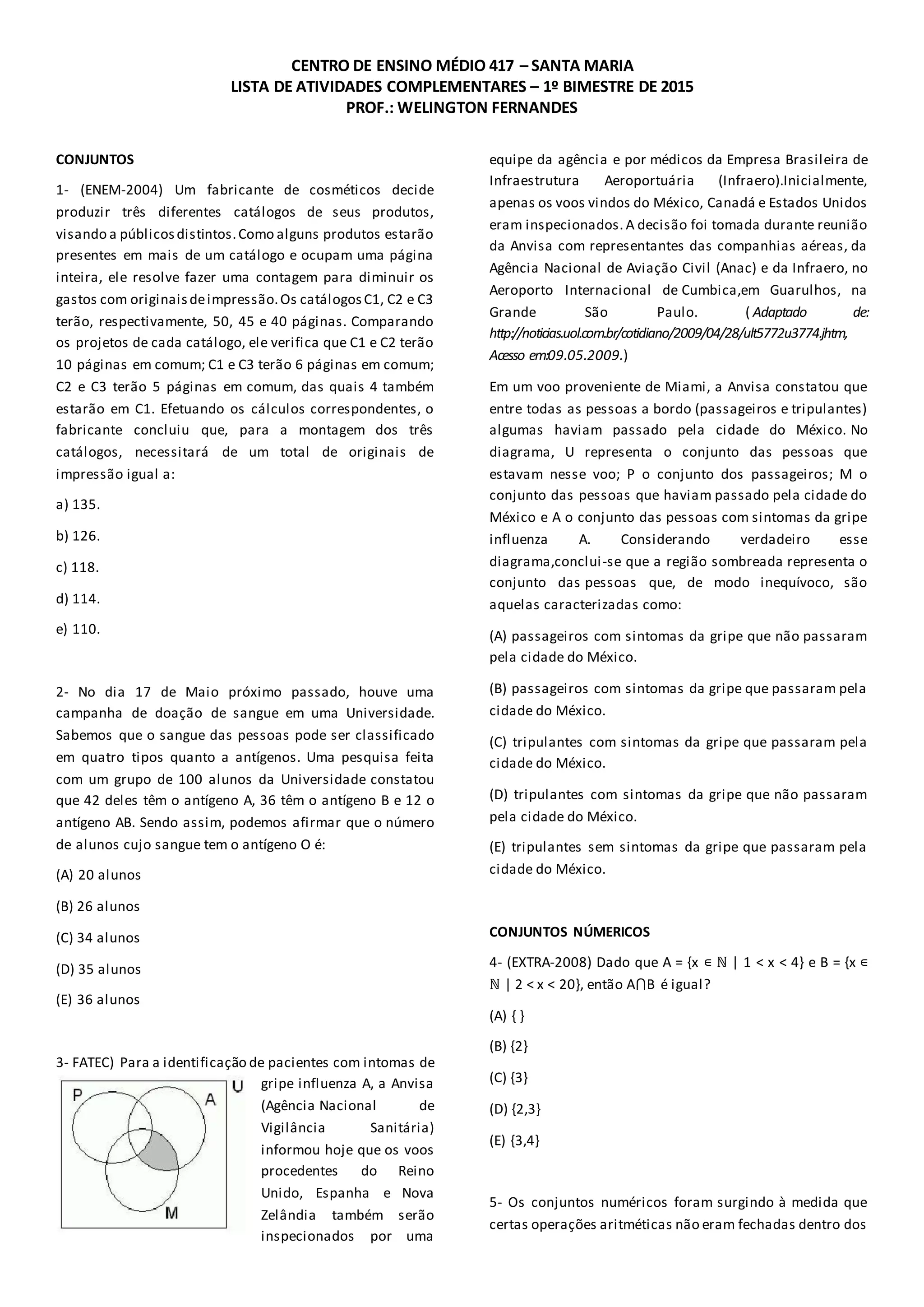 2) As questões 1-5 tratam de conjuntos e suas propriedades e operações.