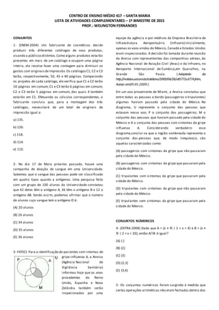 1) O documento lista 10 atividades complementares com questões sobre conjuntos, funções afins e conjuntos numéricos.