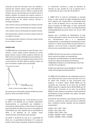 3) As questões 6-9 tratam de funções afins, representando relações entre variáveis como quantidade, preço e mês.