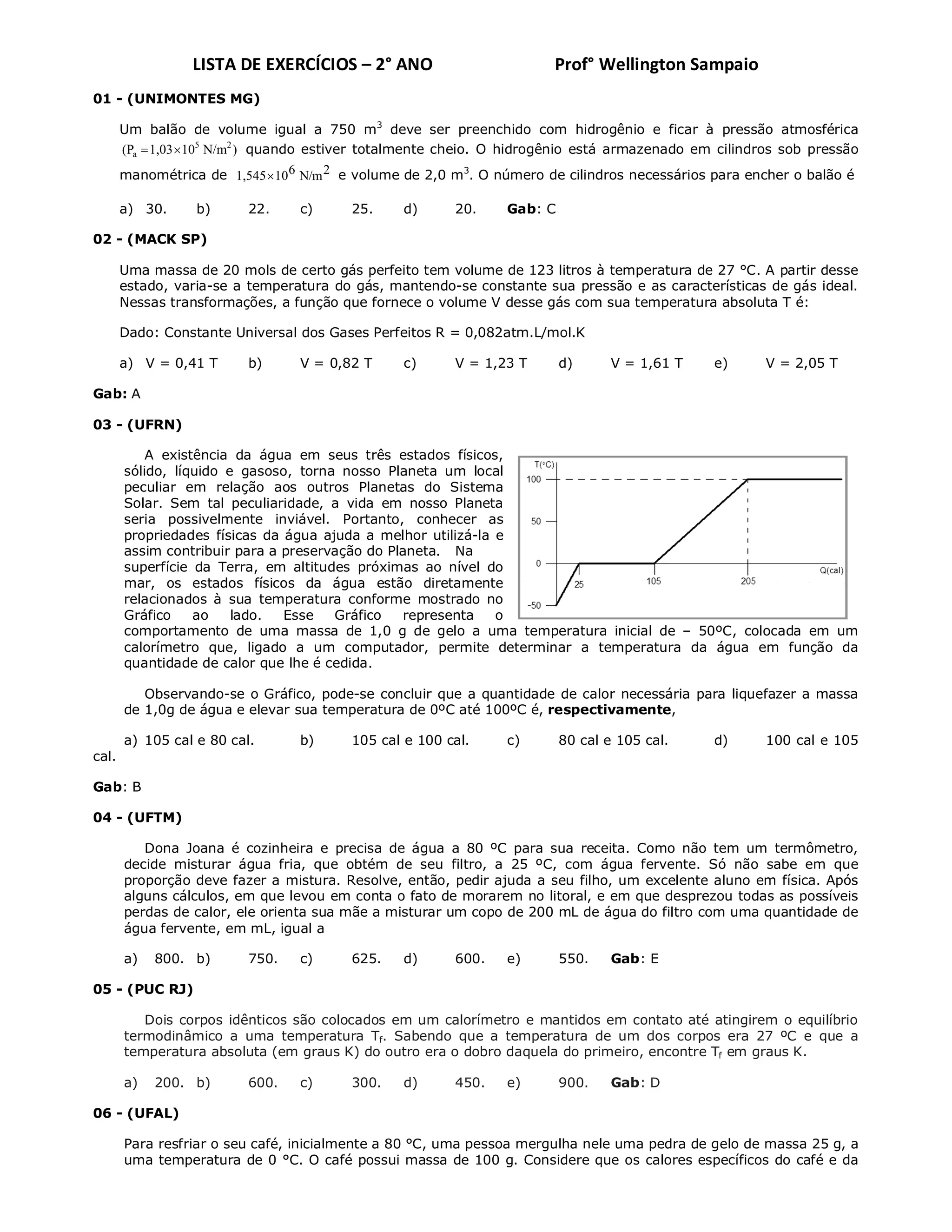 Este documento contém 15 exercícios sobre propriedades térmicas e mudanças de estado da matéria. Os exercícios abordam tópicos como calor latente, calor específico, equilíbrio térmico e diagrama de fases. As questões devem ser respondidas com base em cálculos e no conhecimento desses conceitos físicos.