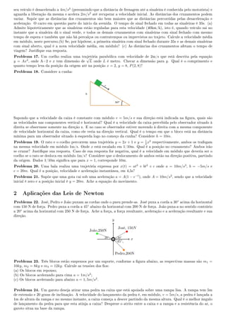 1) O documento contém 29 problemas de física envolvendo cinemática, dinâmica e estática.