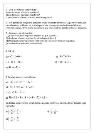 6 – Um garoto faz o seguinte percurso sobre uma reta numérica: “A partir do zero, ele