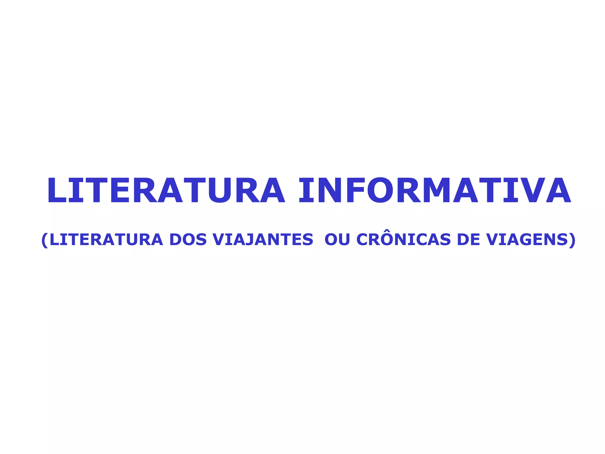 O documento descreve os objetivos e principais obras da literatura dos viajantes e jesuítica no Brasil colonial. A literatura dos viajantes buscava informar sobre a terra, os habitantes e as riquezas, além da conversão ao cristianismo. Já a literatura jesuítica tinha como objetivo o trabalho catequético e a defesa dos indígenas, enquanto também promovia a crítica às suas práticas culturais.