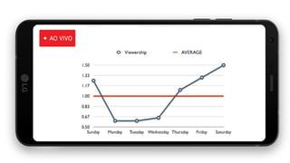 O documento discute o impacto do YouTube na audiência brasileira, destacando que 96% dos jovens entre 18 e 35 anos acessam a plataforma e que mais pessoas nessa faixa etária assistem ao YouTube do que à TV a cabo. A interação e a autenticidade dos vídeos são consideradas importantes, com uma preferência crescente por conteúdos curtos e tutoriais. Além disso, a média de tempo online no mobile é superior a uma hora por dia, evidenciando o consumo significativo de vídeos entre as classes A, B e C.