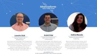 O documento apresenta a startup Agilethink e seu método Agilethink® Canvas, que visa simplificar a gestão e desenvolvimento de projetos por meio de uma abordagem ágil. Os autores possuem vasta experiência em tecnologia da informação e educação, e o livro oferece treinamentos e ferramentas digitais para auxiliar na aplicação do método. Além disso, o material inclui conceitos ágeis e casos práticos, com foco na melhoria da interação homem-máquina.