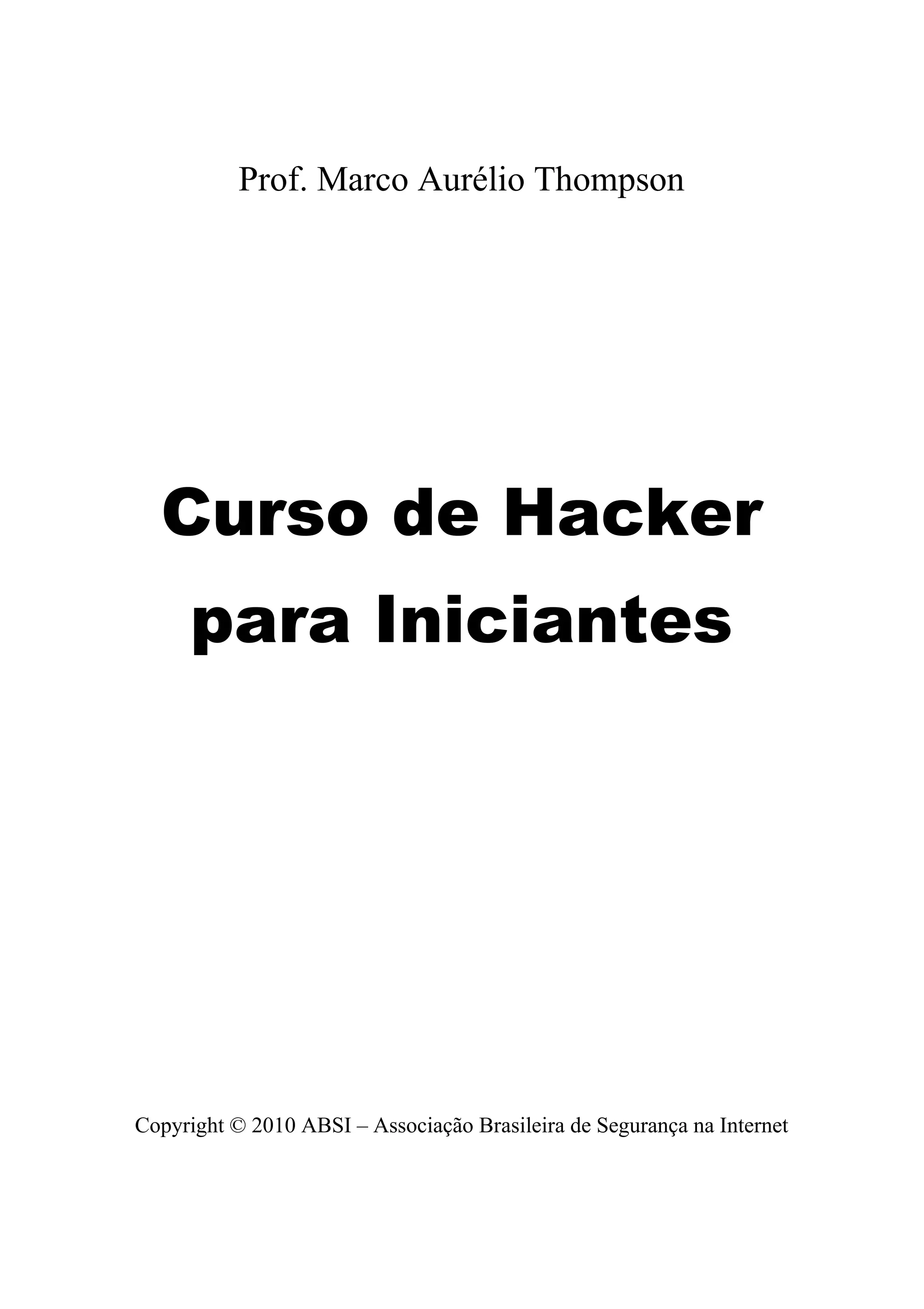 1) O documento é um manual intitulado "Curso de Hacker para Iniciantes" escrito por Marco Aurélio Thompson.