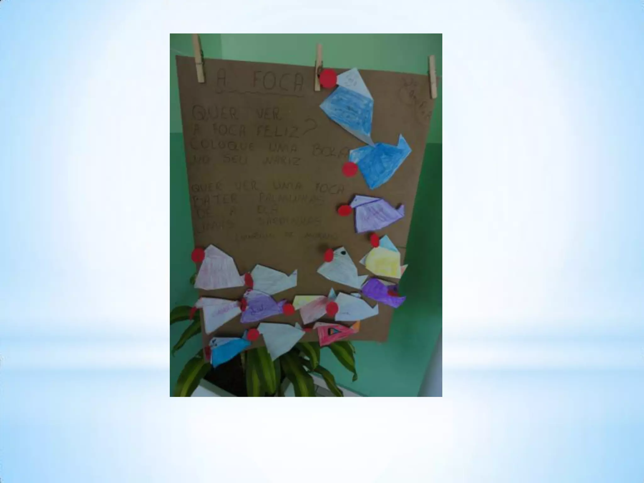O documento apresenta instruções de dobradura para diferentes figuras, incluindo uma casa, um coelho, flores e um galinho. Também menciona a dobradura de uma foca que canta músicas de roda. Cada dobradura é parte de atividades lúdicas para crianças.