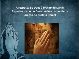 O documento descreve como Deus respondeu rapidamente à oração de Daniel, revelando mais do que Daniel havia pedido. Deus também revelou a Daniel detalhes sobre o Messias, incluindo sua morte e vitória final sobre o anticristo. A oração de Daniel recebeu grande revelação celestial sobre os planos de Deus.